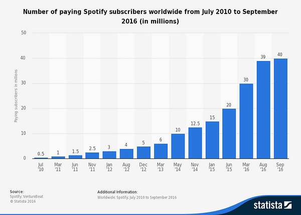 e math: Spotify pays about $0.006 to $0.0084 per stream to the holder of music rights. And the “holder” can be split among the record label, producers, artists, and songwriters. In short, streaming is a volume game.